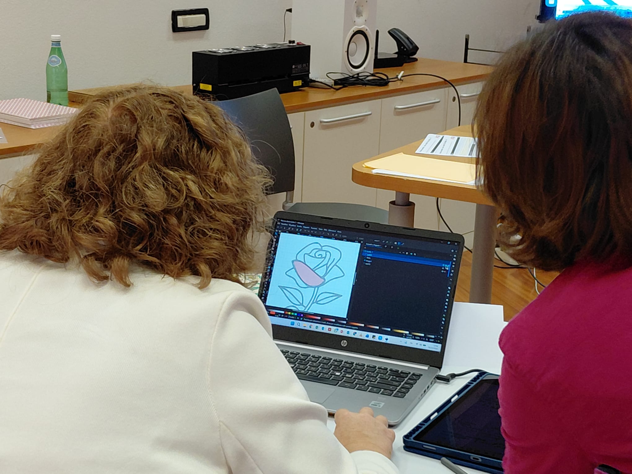 Les jours suivants, Mathieu a initié certains professionnels de la Fondation au dessin en relief assisté par ordinateur avec le logiciel libre Inkscape qu’ils ne connaissaient pas. Ils ont produit leurs propres ressources tactiles qu’ils envisagent désormais de proposer aux enfants qu’ils accompagnent à la fondation : des jeux et des images. Anne a testé et commenté les productions, comme cela se fait à l’INSEI. Les participants ont pu voir l’importance de travailler en binôme : dessinateur voyant/lecteur aveugle.